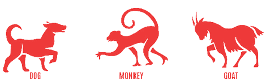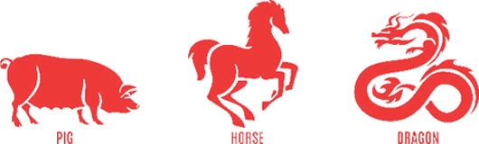 The Chinese signs of Zodiac are represented by twelve animals in the cycle repeated each twelve years.
