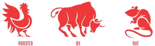 The Chinese signs of Zodiac are represented by twelve animals in the cycle repeated each twelve years.